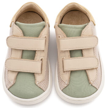 Σνίκερ με Διπλή Μπαρέτα Χρατς απο Ύφασμα και Δέρμα σε Μπεζ Μέντα Χρώμα