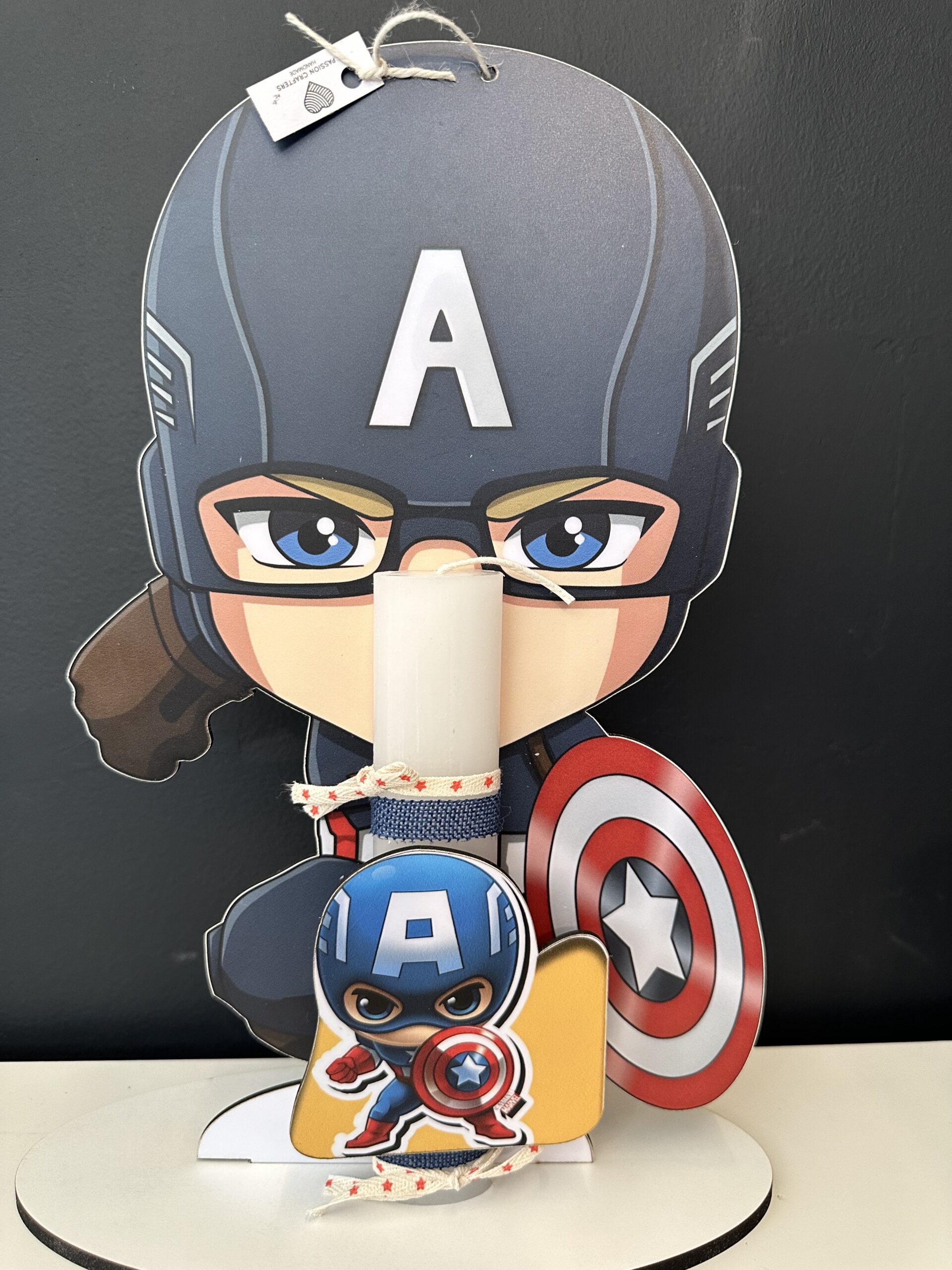 Λαμπάδα CAPTAIN AMERICA με Αρωματικό Κερί σε Διακοσμητικό ταμπλό με βάση