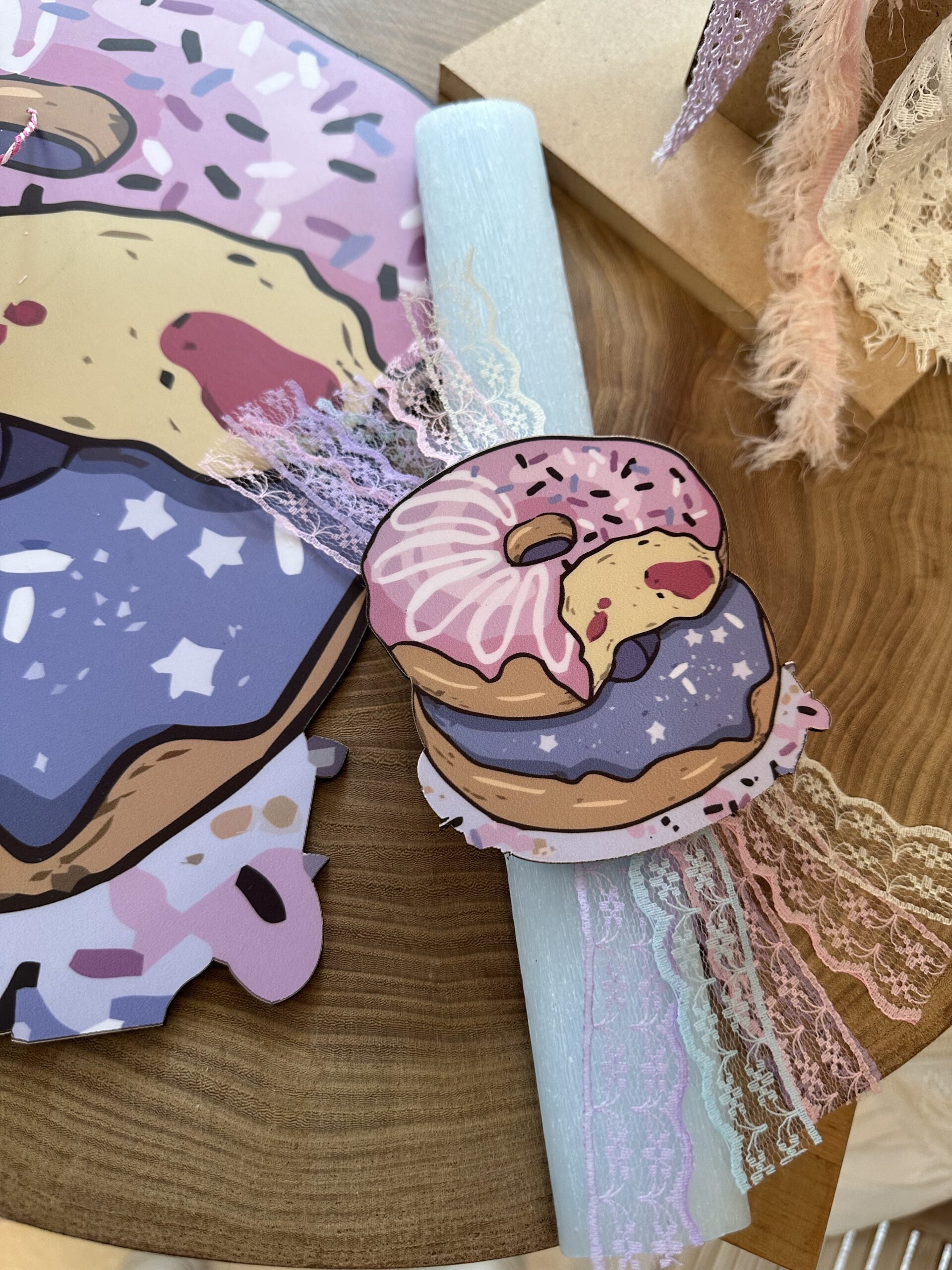 Λαμπάδα Donuts με Αρωματικό Κερί σε Διακοσμητικό ταμπλό