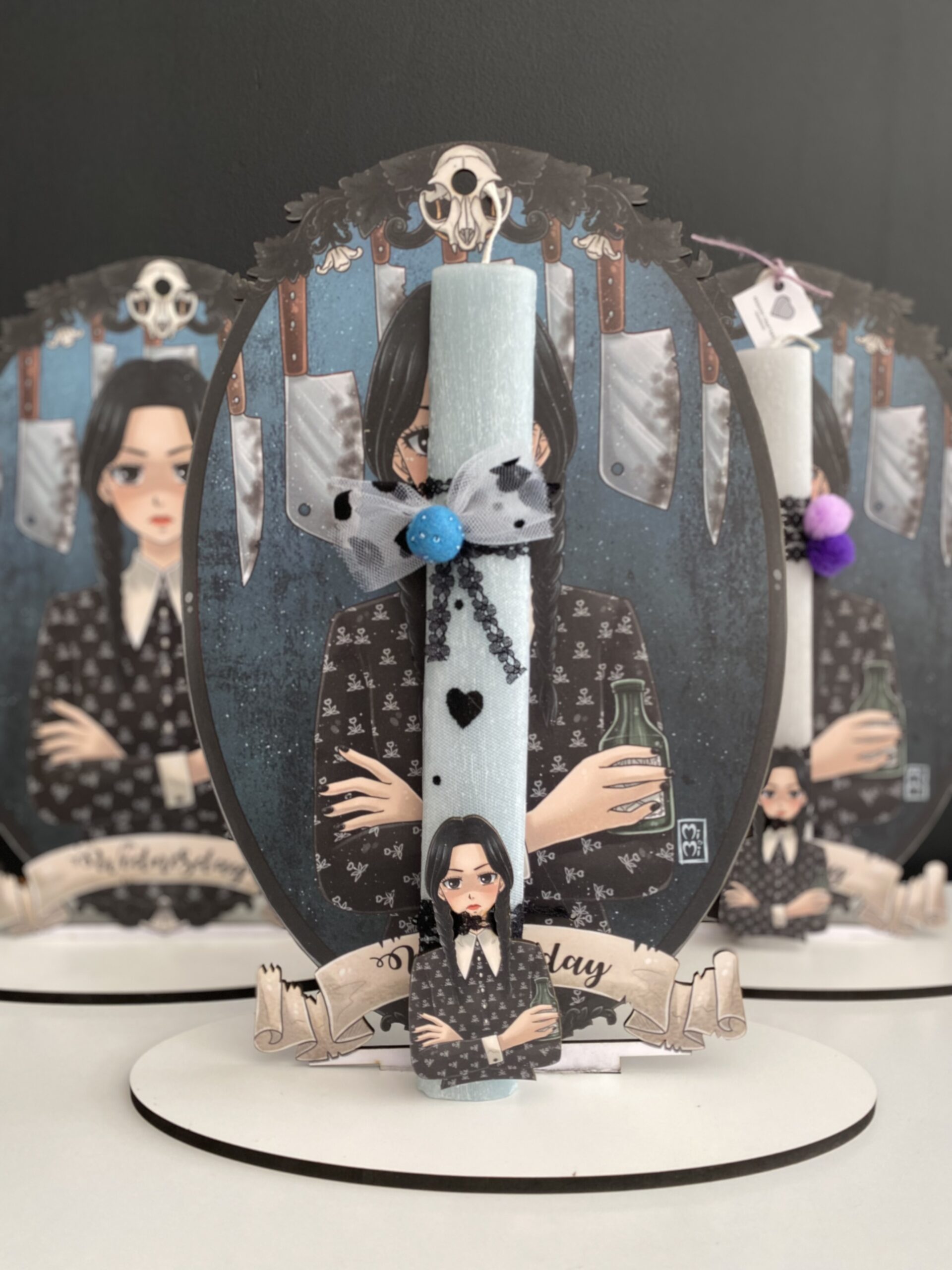Λαμπάδα Wednesday με Αρωματικό Κερί σε Διακοσμητικό ταμπλό με βάση