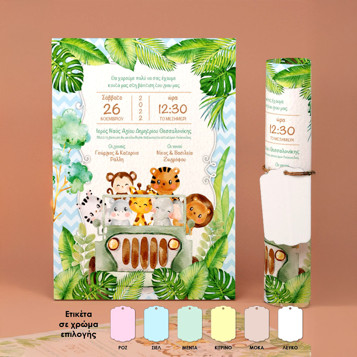 Προσκλητήριο βάπτισης αγόρι, Ζωάκια της ζούγκλας
