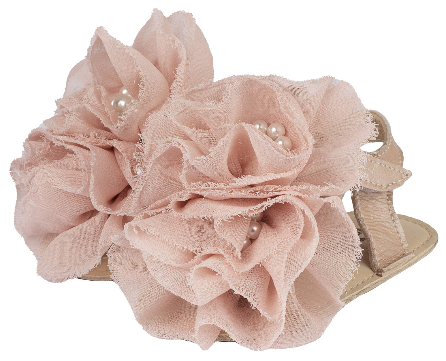 Δερμάτινο Πέδιλο Chiffon Λουλούδια σε Ροζ Χρώμα